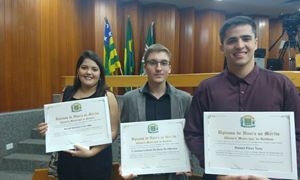 No dia 26 de novembro de 2019, os estudantes Cristhian Gabriel da Rosa Oliveira,  Daniel Pires Neto, e Sarah Queiroz Carvalho, do Projeto de Extensão da EMC/UFG (Coordenado pela Profa. Cacilda de J. Ribeiro) receberam  da Câmara Municipal de Goiânia, os Certificados de Honra ao Mérito, na Sessão Especial em Homenagem aos Educadores do Futuro, em reconhecimento aos Professores e Estudantes que se destacaram por seu compromisso em práticas inovadoras e exitosas.