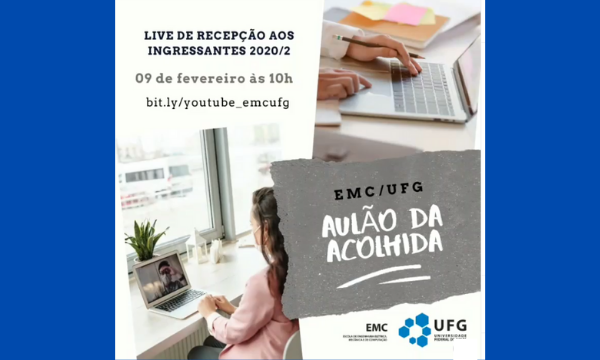 A EMC/UFG convida a todos os ingressantes 2020/2 para o Aulão da Acolhida, a nossa Live de recepção aos novos alunos.